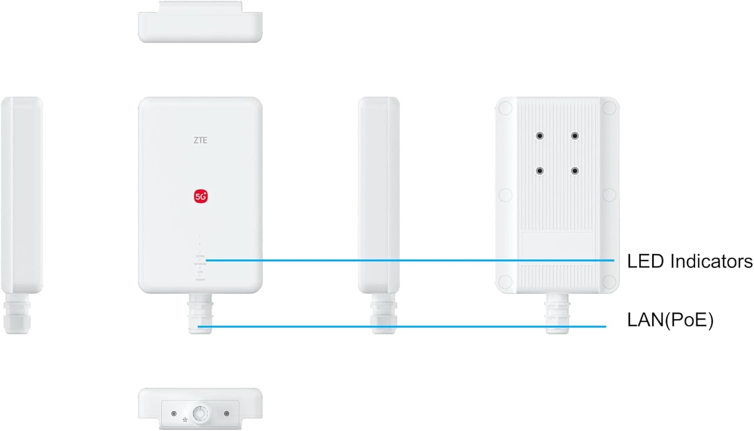 ✅ ZTE MC7510 5G Router, DL up to 4.29 Gbps / UL up to 320 Mbps, Category 19 in 4G: 24-month warranty, with 2.5 Gbps PoE port.